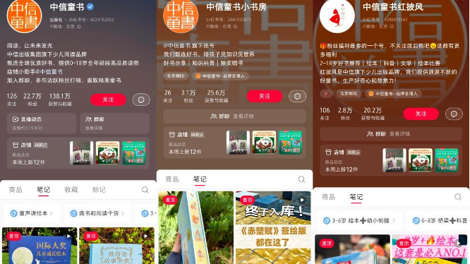 中信童書在小紅書平臺(tái)的賬號(hào)矩陣