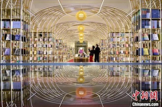 市民在試營業(yè)的新華南宮書店拍照。中新社記者 韋亮 攝