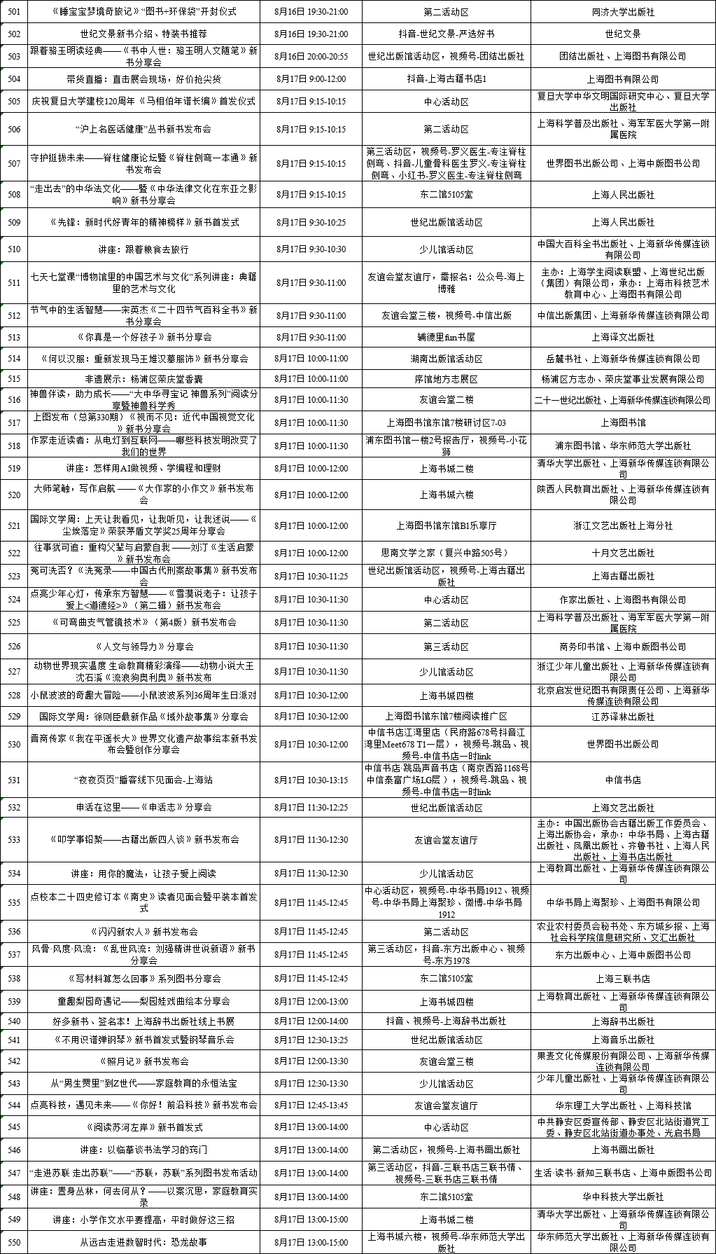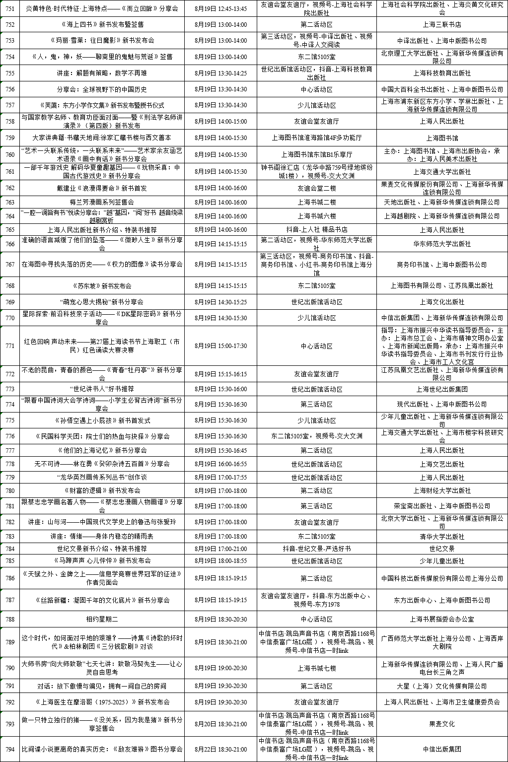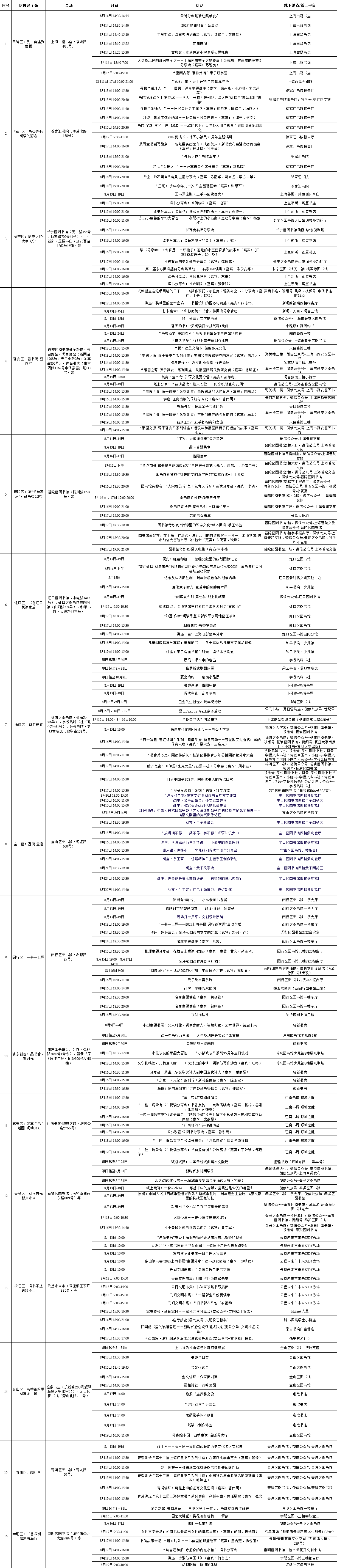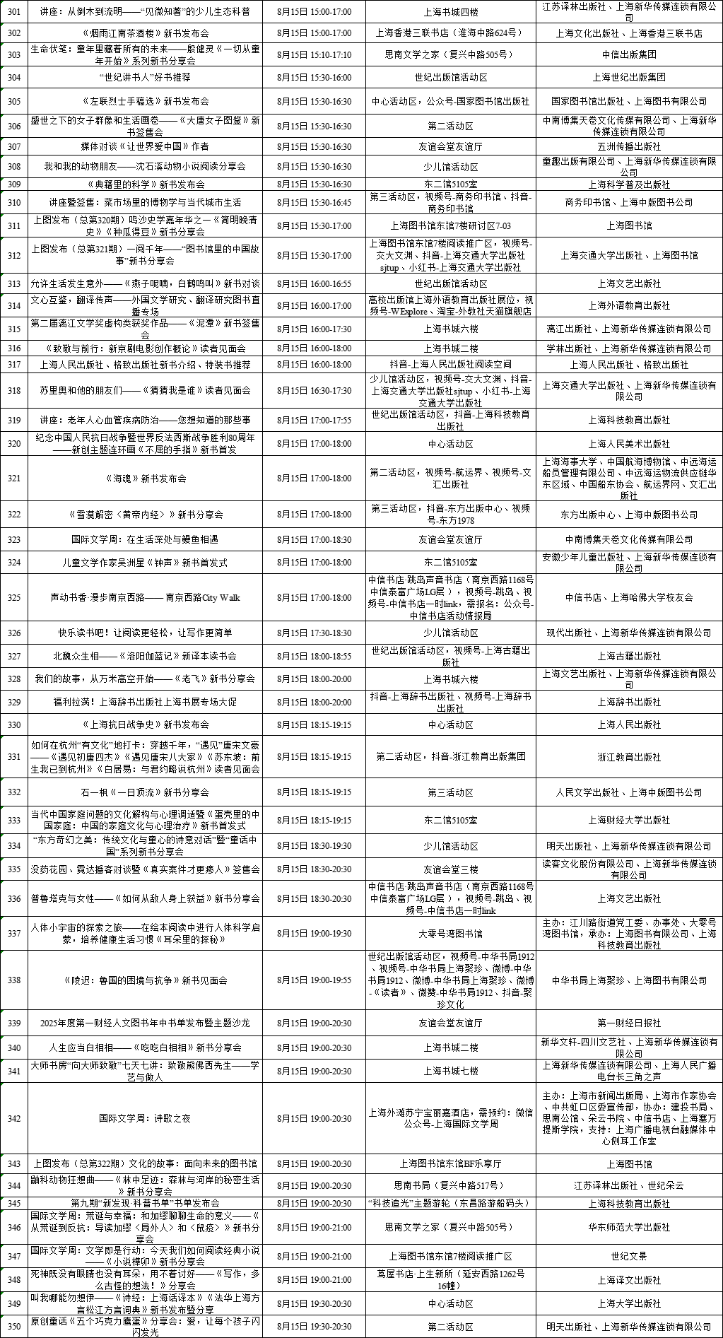 上海展覽中心、上海書城“雙主場(chǎng)”及延伸場(chǎng)地活動(dòng)