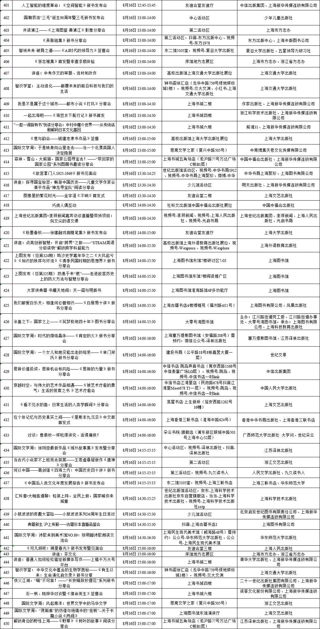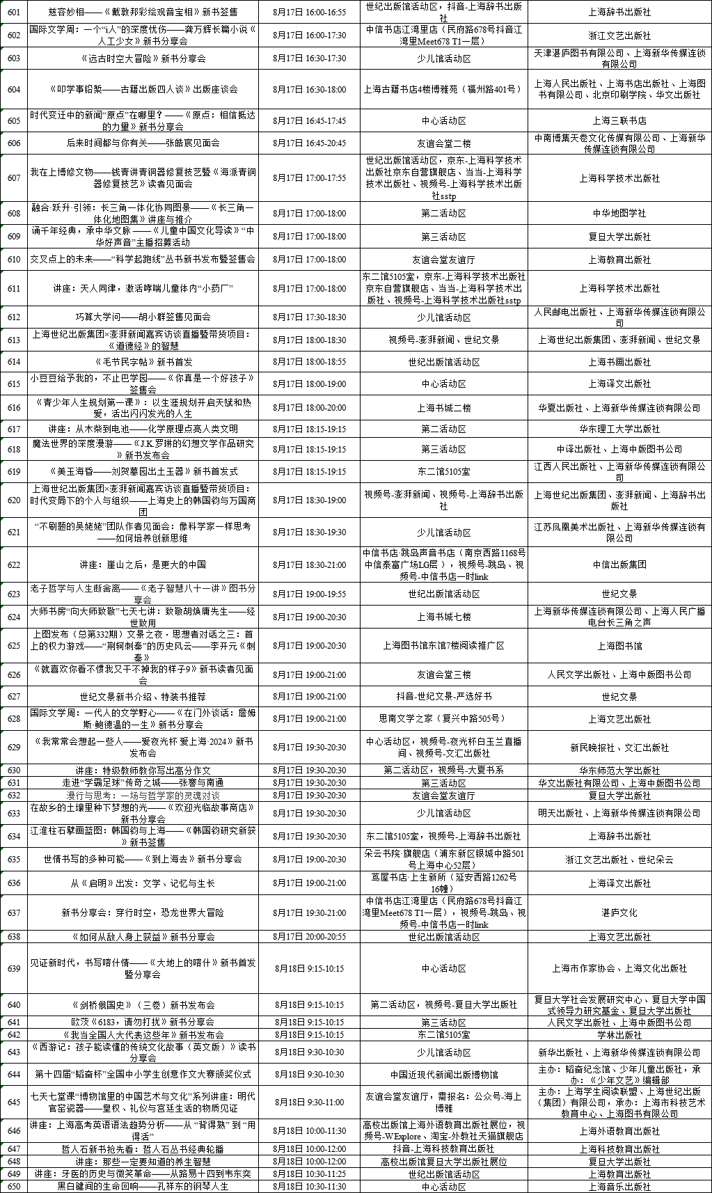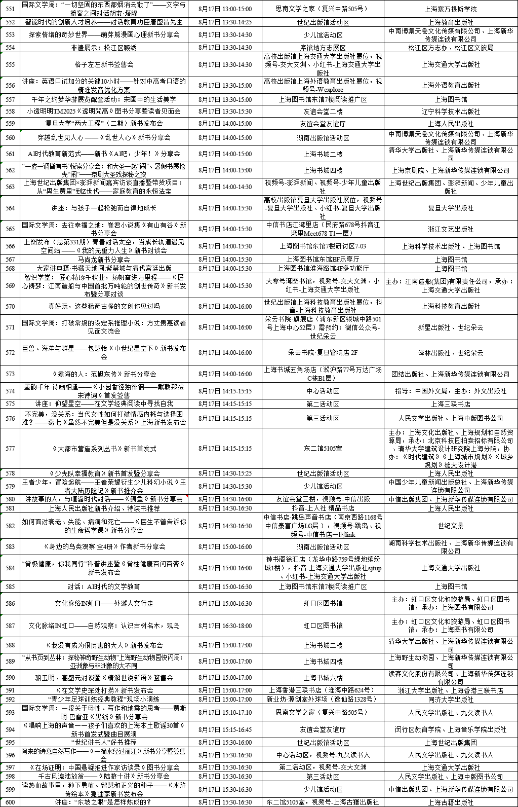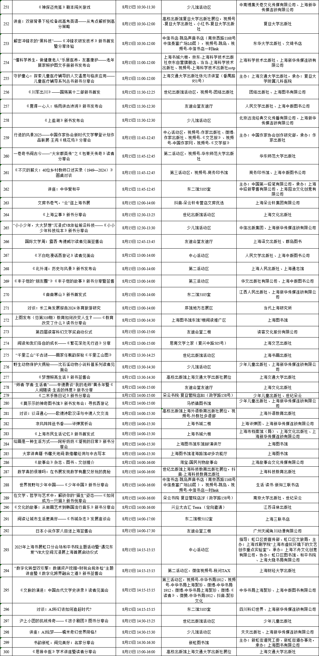 上海展覽中心、上海書城“雙主場(chǎng)”及延伸場(chǎng)地活動(dòng)