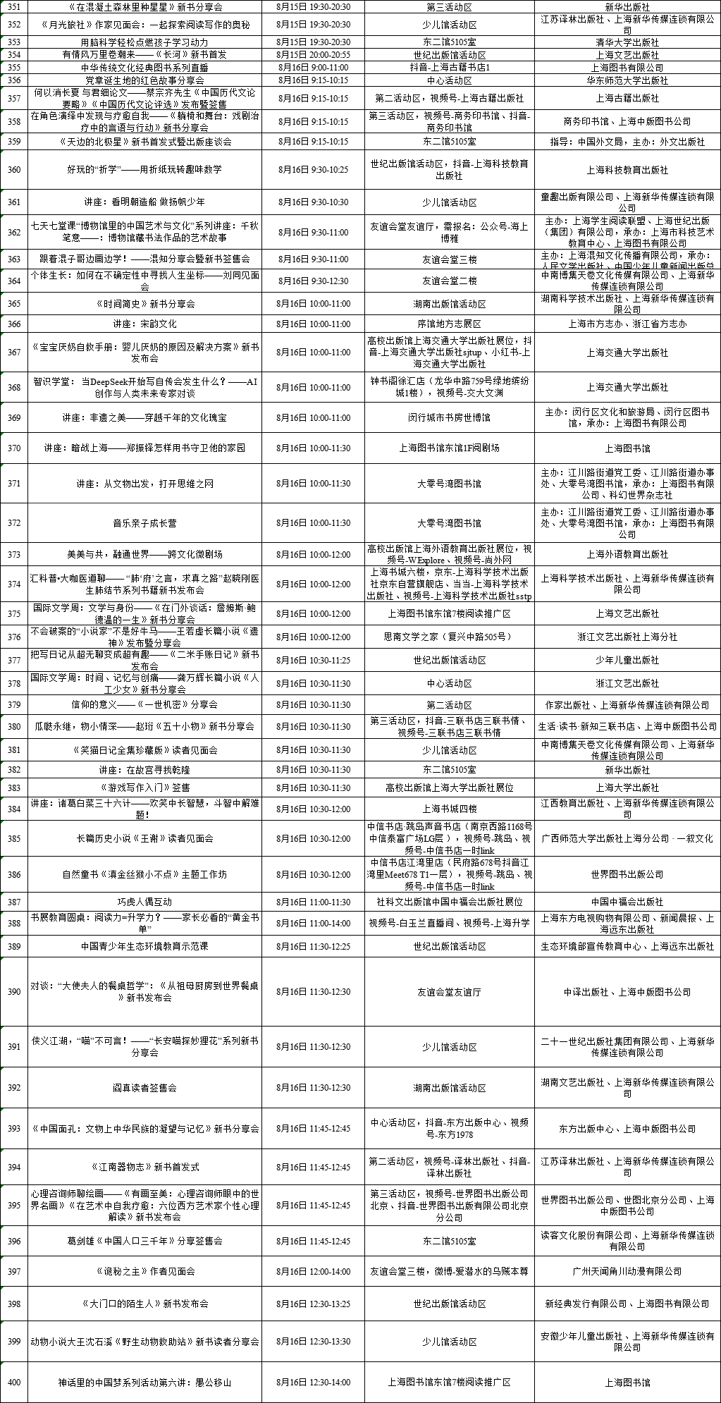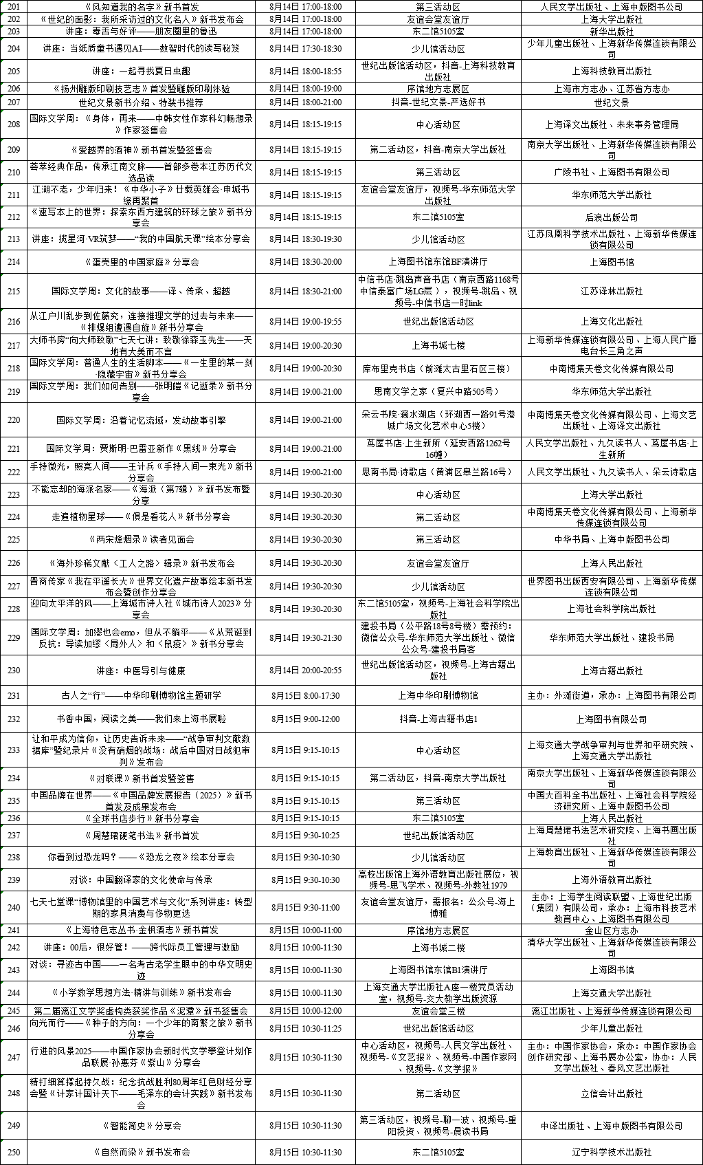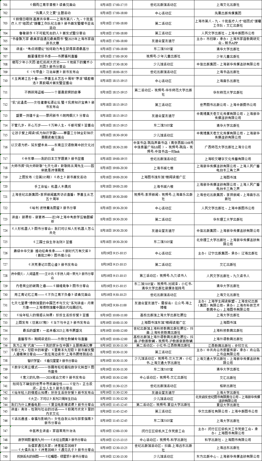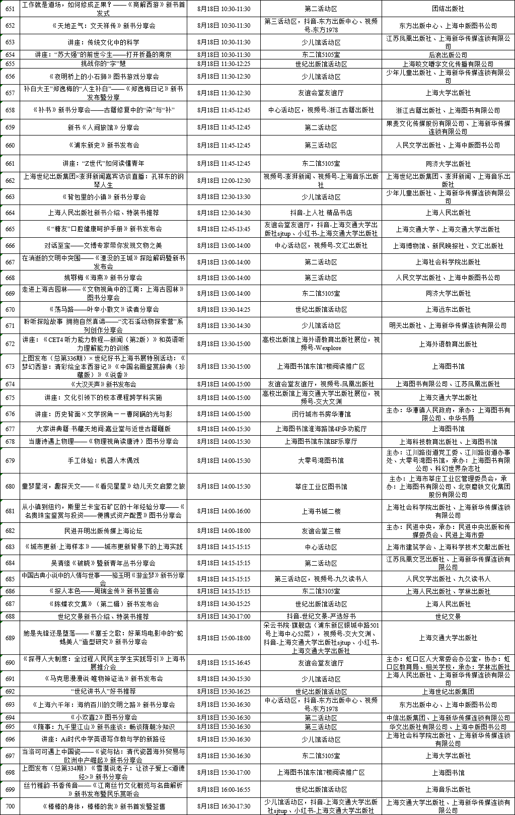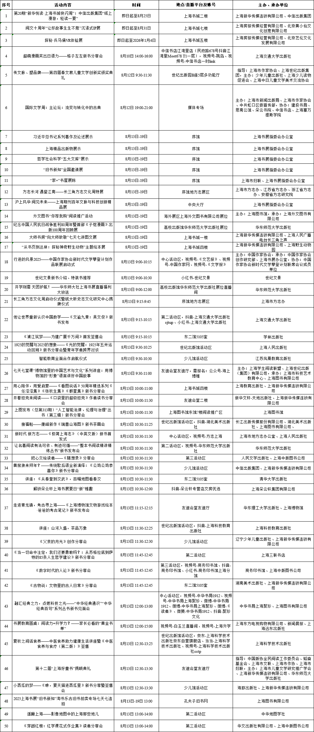 上海展覽中心、上海書城“雙主場(chǎng)”及延伸場(chǎng)地活動(dòng)
