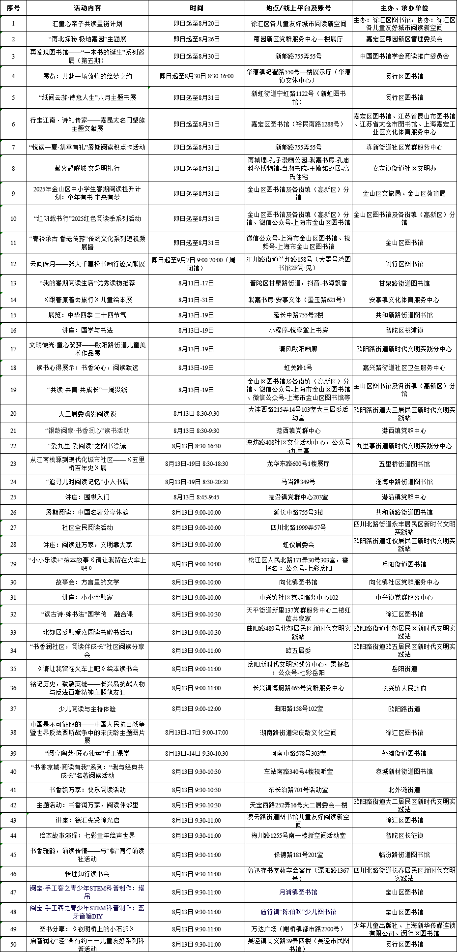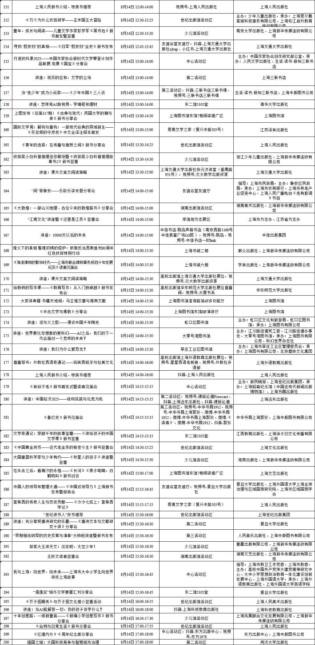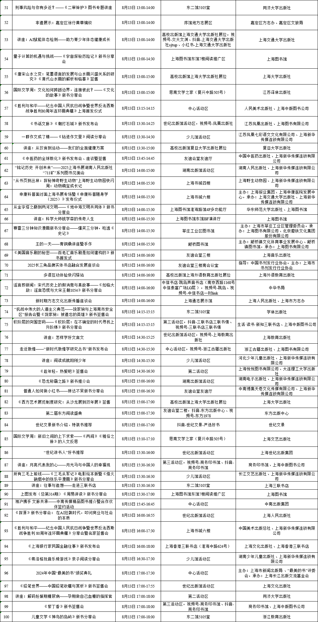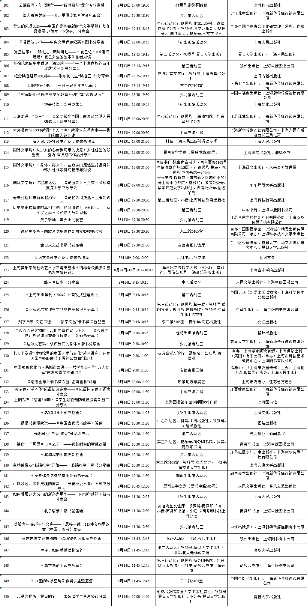 上海展覽中心、上海書城“雙主場(chǎng)”及延伸場(chǎng)地活動(dòng)
