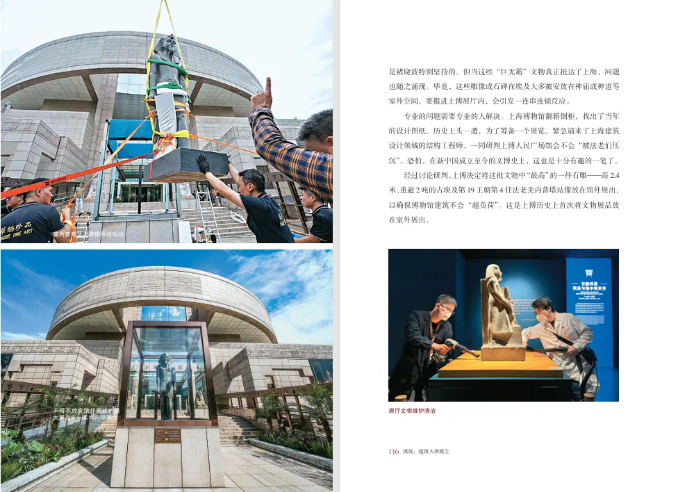 定位清晰后,全書的框架逐漸浮出水面:前半部分對埃及展誕生的全過程進(jìn)行全方位回顧,穿插對上博參與策展的關(guān)鍵部門、核心成員的訪談,重在“敘事”,以情動人;后半部分則是對上博兩位高層——館長褚曉波、時任副館長李峰的專訪,從專業(yè)角度對埃及展進(jìn)行復(fù)盤,是經(jīng)驗總結(jié),更是反思,以理服人。