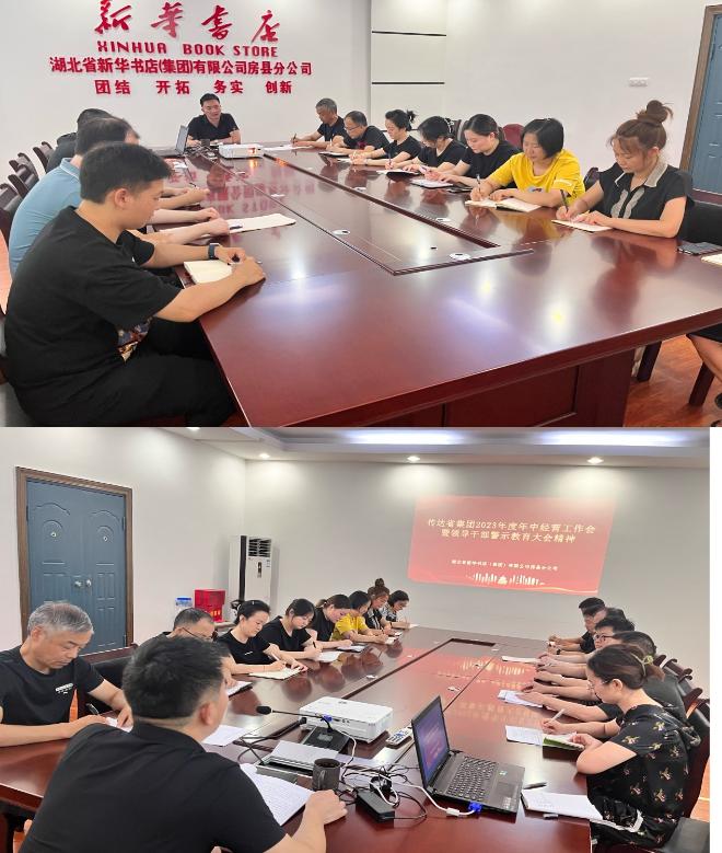 7月26日,浠水縣分公司在五樓會議室召開專題會,認(rèn)真?zhèn)鬟_(dá)學(xué)習(xí)新華書店集團(tuán)2023年度年中經(jīng)營工作會暨領(lǐng)導(dǎo)干部警示教育大會精神,班子成員、中層人員參加會議。