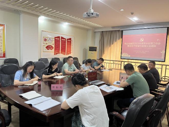 7月28日,谷城縣分公司召開專題會,認(rèn)真?zhèn)鬟_(dá)新華書店集團(tuán)2023年度年中經(jīng)營工作會暨領(lǐng)導(dǎo)干部警示教育大會精神,班子成員、中層人員參加會議。