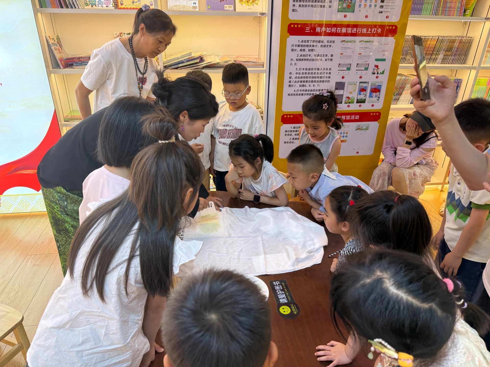 活動現(xiàn)場,周瓊老師為孩子們生動講解土家族傳統(tǒng)織錦“西蘭卡普”的紋樣藝術(shù),從象征吉祥的“萬字紋”到記錄歷史的“遷徙紋”,并通過互動讓孩子們領(lǐng)略土家族“無字史書”的美學(xué)智慧。手工環(huán)節(jié)中,孩子們使用板藍根、蘇木等天然染料,在老師指導(dǎo)下親手體驗植物蠟染技藝,制作出獨具特色的蠟染方巾,在實踐中感受民族文化的深厚底蘊。