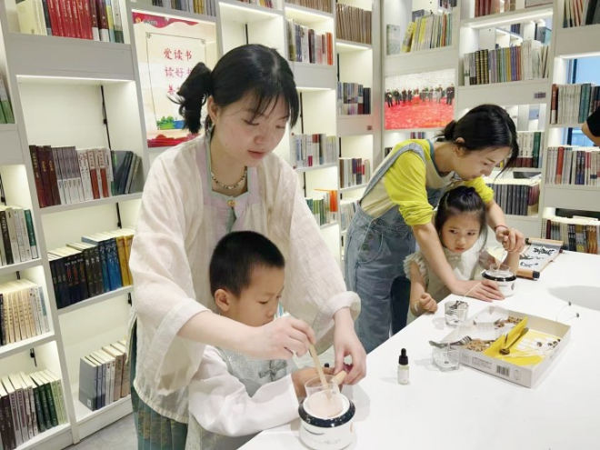 活動(dòng)現(xiàn)場,古韻與香氣交織,盡顯雅致風(fēng)華。在分公司員工帶領(lǐng)下,親子家庭制作藥材香囊,選用艾草等天然藥材,既驅(qū)蚊安神,體驗(yàn)中醫(yī)文化;香薰蠟燭DIY環(huán)節(jié),大家熬制蠟油,用干花點(diǎn)綴,暗香浮動(dòng);古法口脂制作環(huán)節(jié)趣味十足,大家用天然蜂蠟與花卉精油調(diào)色,重現(xiàn)唐代“點(diǎn)絳唇”的妝容之美。