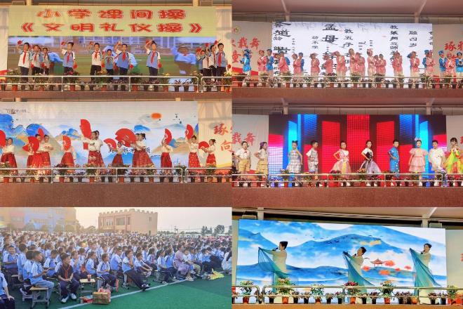 當(dāng)晚的演出形式多元,涵蓋舞蹈、朗誦、小品、走秀、器樂演奏等19個師生節(jié)目。其中《文明禮儀操》手勢舞,將日常行為規(guī)范與韻律節(jié)奏相結(jié)合,孩子們整齊的動作中傳遞著《青少年文明禮儀》中的核心內(nèi)涵,讓文明素養(yǎng)以可視化的方式浸潤童心;古詩《三字經(jīng)》誦讀,搭配古韻十足的肢體語言,將經(jīng)典蒙學(xué)讀物的朗朗上口與文化底蘊展現(xiàn)得淋漓盡致,引得臺下師生大聲跟誦,形成共讀經(jīng)典的溫馨場景。此外,環(huán)保時裝秀、舞蹈劇《新長征路上的我們》等節(jié)目,也從不同角度呼應(yīng)了環(huán)保科普、紅色教育等主題讀物,讓書本知識在舞臺上“活”了起來。