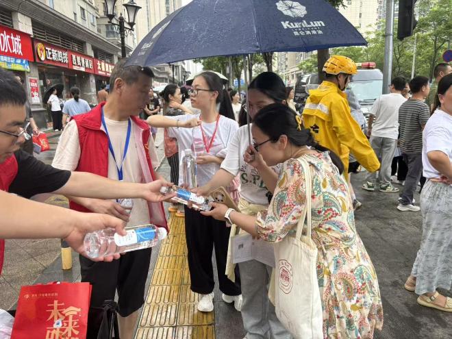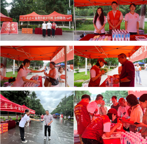 活動(dòng)現(xiàn)場(chǎng),分公司志愿者布置"愛(ài)心補(bǔ)給站",身著統(tǒng)一的紅色馬甲,穿梭在人群中,將一瓶瓶滿載關(guān)愛(ài)的水遞到考生、家長(zhǎng)及場(chǎng)外執(zhí)勤人員手中,并附上貼心的話語(yǔ)。