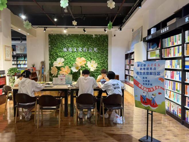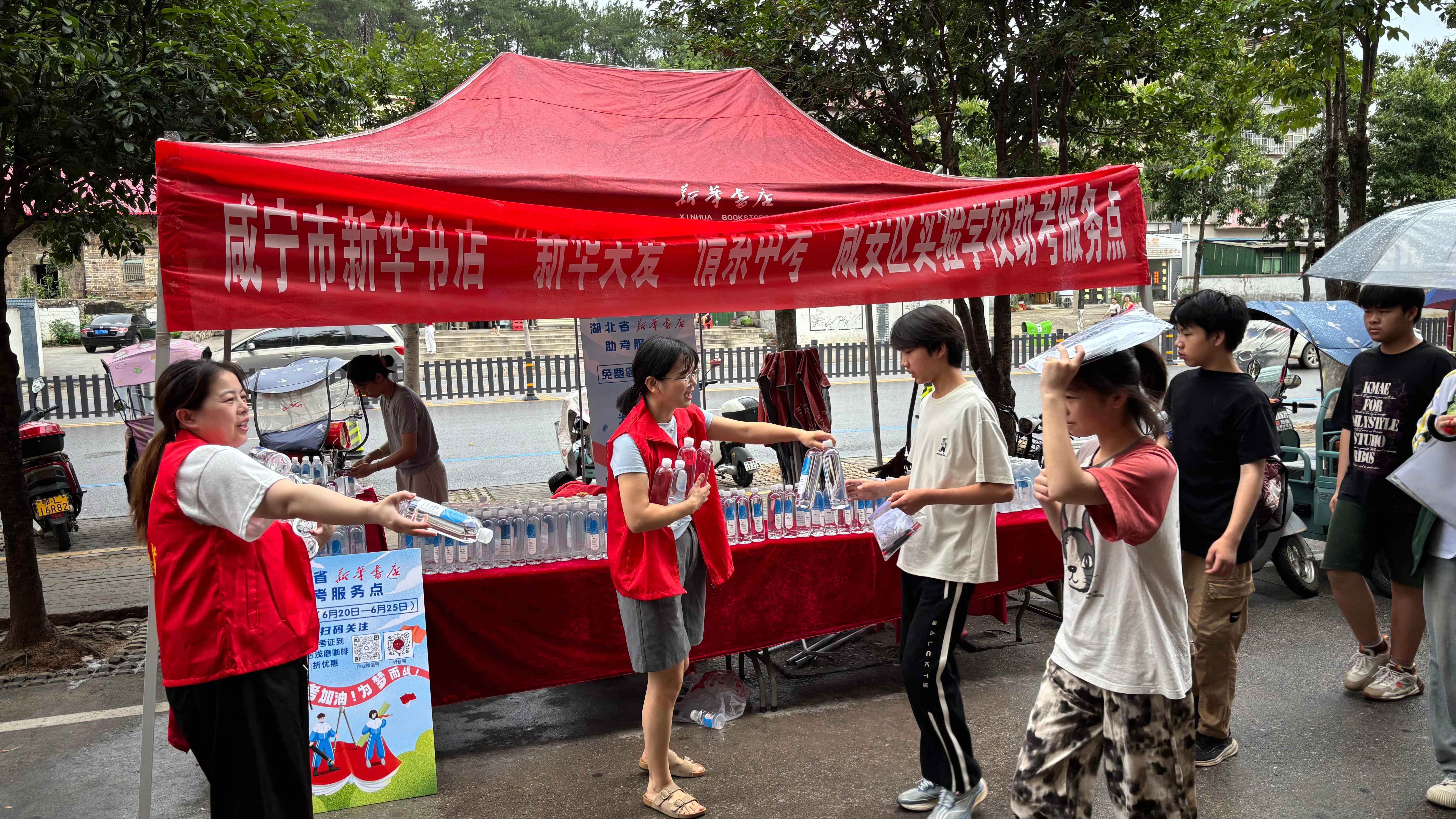 活動(dòng)現(xiàn)場(chǎng),“倍閱”書(shū)香水和清涼油、創(chuàng)口貼、碘伏等防暑應(yīng)急物資有序擺放,供考生及陪考家長(zhǎng)按需自愿取用。分公司工作人員還主動(dòng)為學(xué)子們遞上精心整理的“考后必備圖書(shū)目錄和假期研學(xué)路線推薦單”,為假期閱讀與下一階段學(xué)習(xí)提供專業(yè)指引。開(kāi)考前后恰逢降雨,分公司助考服務(wù)點(diǎn)為眾多考生與家長(zhǎng)提供了一個(gè)溫馨的臨時(shí)避風(fēng)港,紛飛的雨絲中,一抹“新華紅”成為考場(chǎng)外動(dòng)人的風(fēng)景。