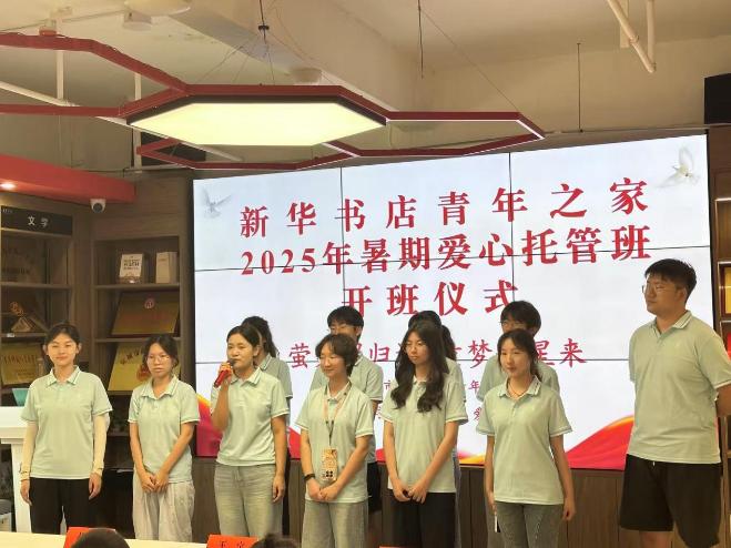 暑假來臨,7月3日,應(yīng)城市2025年暑期“愛心托管班”開班儀式在應(yīng)城市分公司中心連鎖店舉行。應(yīng)城團市委、分公司有關(guān)人員及武漢科技大學(xué)“許白昊班”愛之星支教團11名大學(xué)生志愿者等參加儀式活動。
