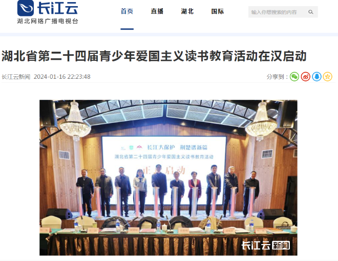1月16日,由湖北省全閱辦、團省委、省教育廳、省市場監(jiān)管局、省新聞出版局聯(lián)合主辦,湖北教育出版社有限公司和湖北省新華書店(集團)有限公司承辦的湖北省第二十四屆青少年愛國主義讀書教育活動在武漢啟動。