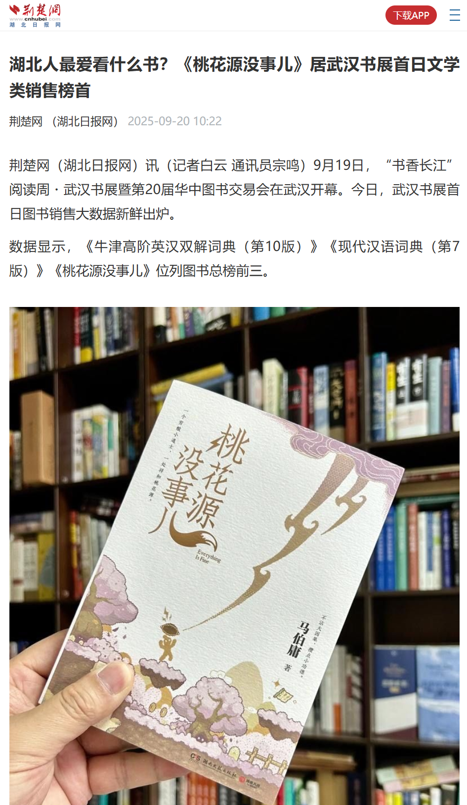 荊楚網(wǎng) | 湖北人最愛看什么書?《桃花源沒(méi)事兒》居武漢書展首日文學(xué)類銷售榜首