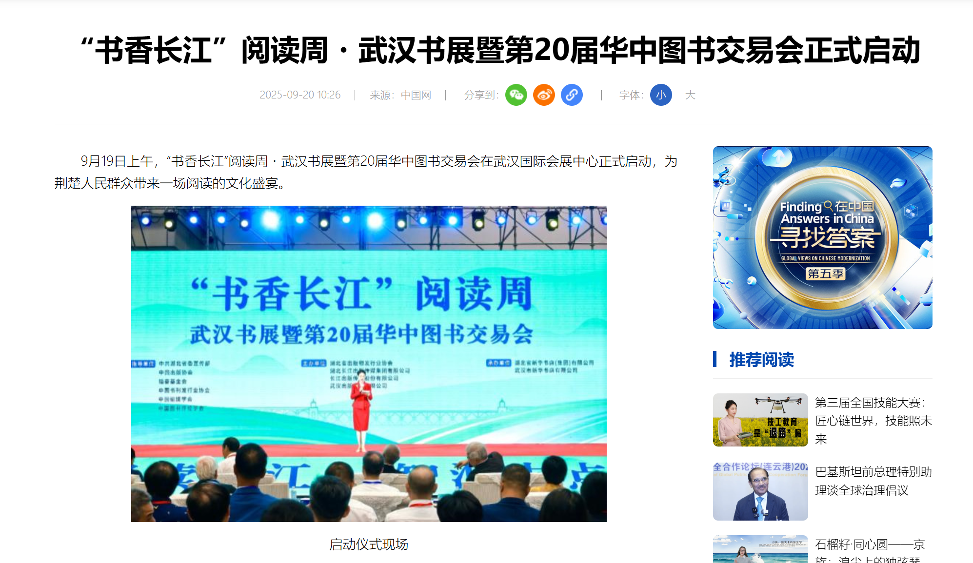 中國網(wǎng) |“書香長江”閱讀周?武漢書展暨第20屆華中圖書交易會(huì)正式啟動(dòng)