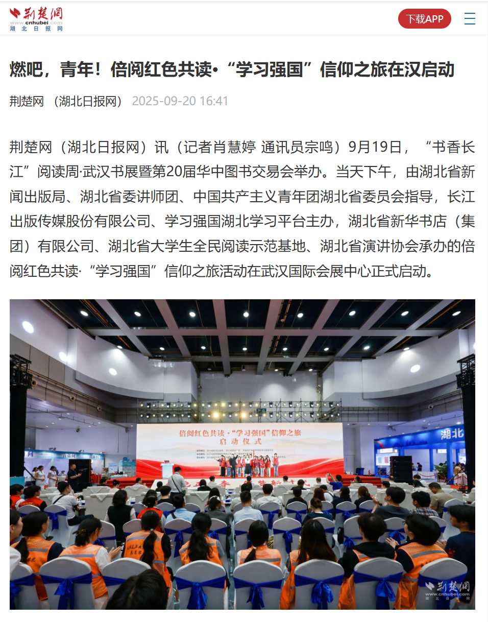 荊楚網(wǎng) | 燃吧,青年!倍閱紅色共讀·“學(xué)習(xí)強(qiáng)國”信仰之旅在漢啟動