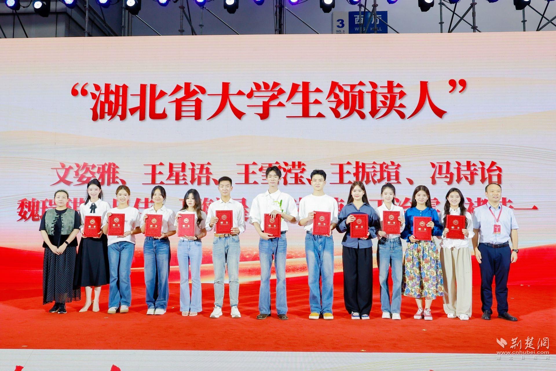 共青團(tuán)湖北省委二級調(diào)研員范蓉、湖北省新華書店黨委副書記、總經(jīng)理陳棟共同向大學(xué)生代表頒發(fā)了“湖北省大學(xué)生領(lǐng)讀人”聘書。