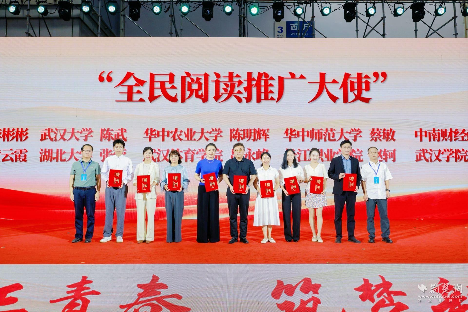 省委宣傳部宣教處處長廖明玉、省教育廳組織處處長姚剛共同頒發(fā)了湖北省高?!叭耖喿x推廣大使”聘書。