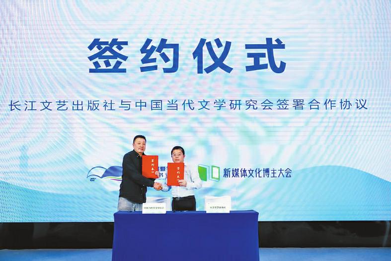 長江文藝出版社與中國當(dāng)代文學(xué)研究會(huì)簽約儀式。