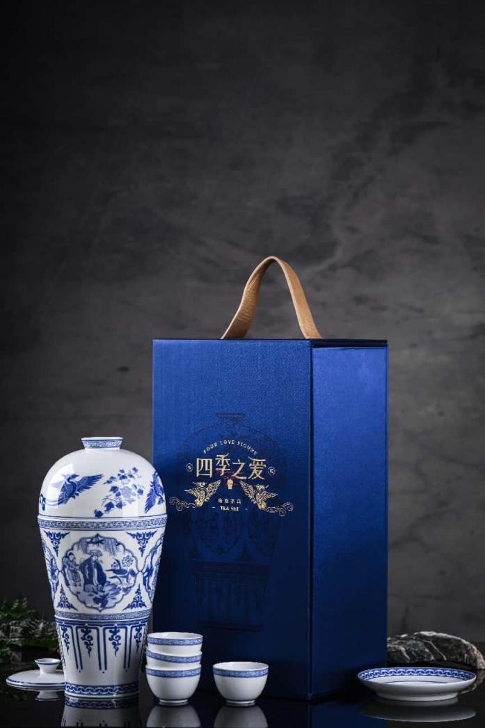 《四季之愛(ài)·梅瓶茶具》靈感源自湖北省博物館“十大鎮(zhèn)館之寶”之一的元青花四愛(ài)圖梅瓶,通過(guò)深入挖掘瓶身《王羲之愛(ài)蘭》《陶淵明愛(ài)菊》《林和靖愛(ài)梅鶴》《周敦頤愛(ài)蓮》的“四愛(ài)故事”內(nèi)涵,進(jìn)行創(chuàng)意產(chǎn)品設(shè)計(jì)。結(jié)構(gòu)上巧妙地利用了拆解組合之法,合則為完整的梅瓶,分則為茶具套裝,既注重了實(shí)用性,又體現(xiàn)了藝術(shù)性和文化傳承。