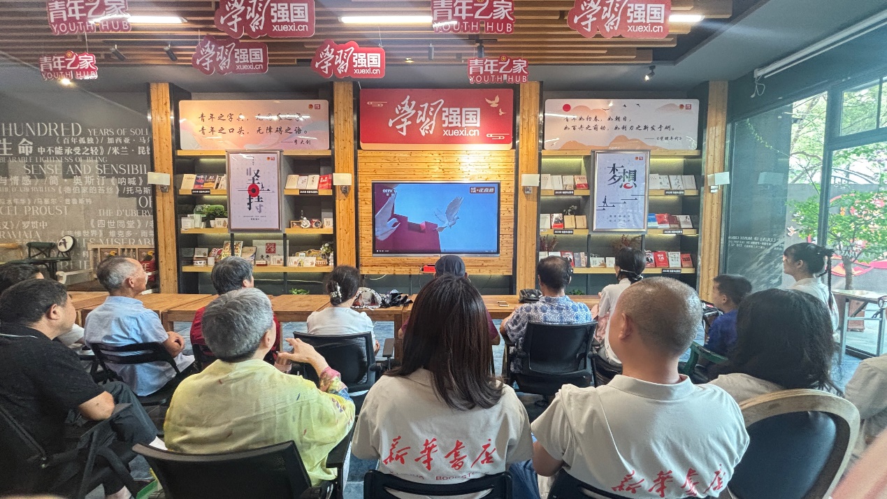 在隨州書城學(xué)習(xí)強(qiáng)國空間,全體黨員干部著裝整齊、精神飽滿,與市民讀者一起收看大會實況直播。