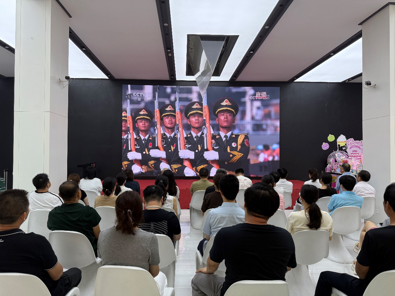 連鎖分公司黨員干部職工在鏗鏘正步聲中提振干事創(chuàng)業(yè)的精氣神,在歷史回響中重溫初心使命。