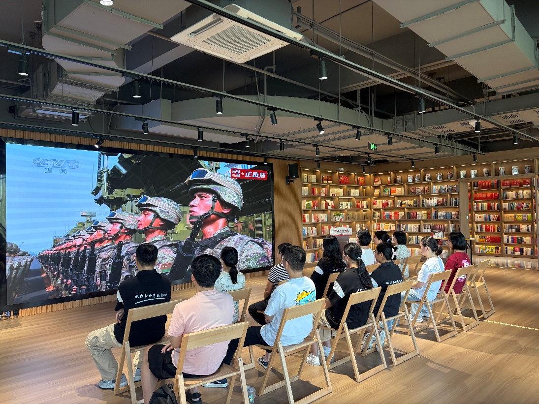 在鄂州市新華書店青年之家,市民和員工在莊重氛圍中傳承抗戰(zhàn)精神,共鑒家國情懷。